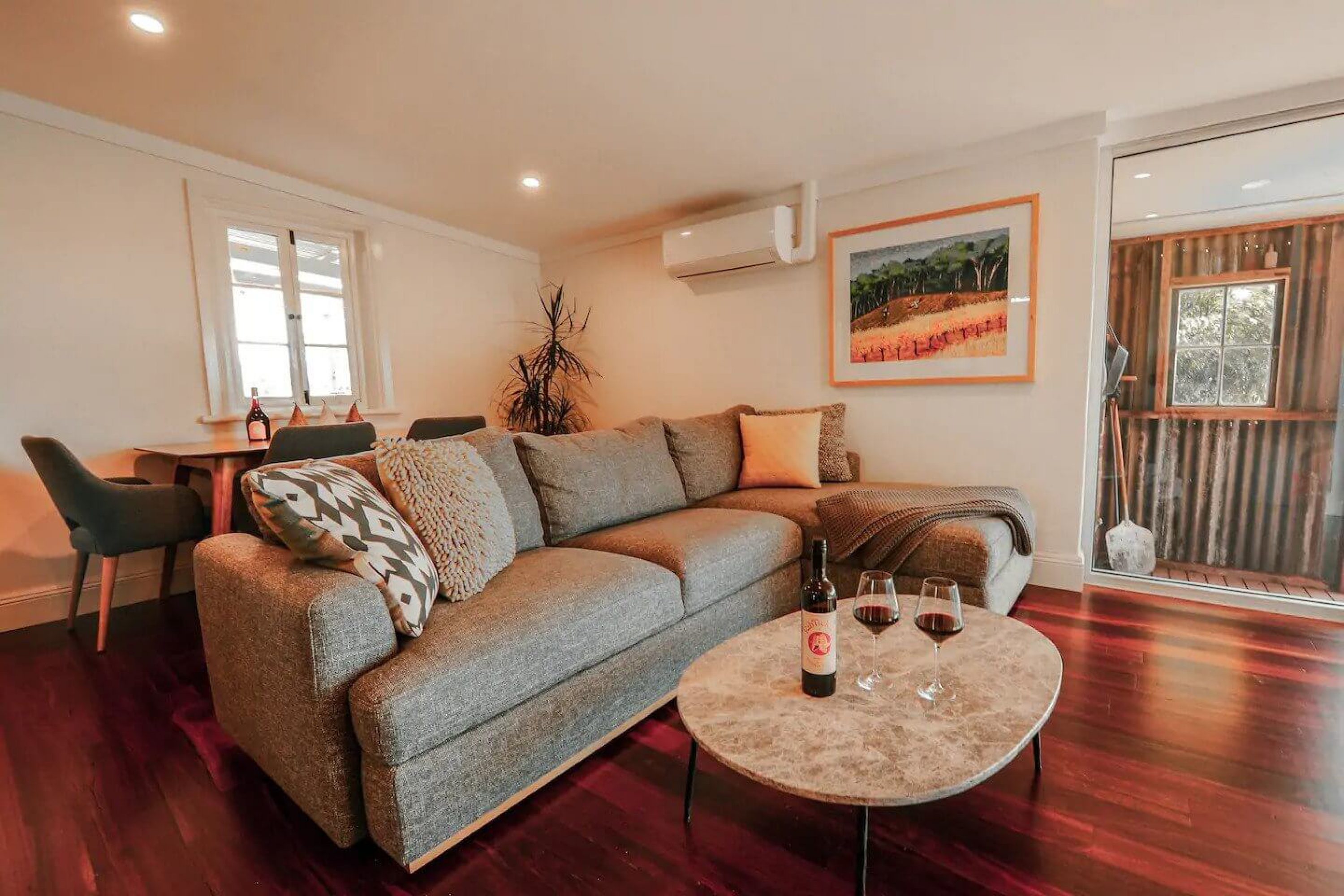 Situated in the heart of the Barossa Valley and nestled amidst 9 acres of vineyard, this fully renovated 1860’s cottage is only 5 minutes walk to Tanunda’s coffee shops and restaurants